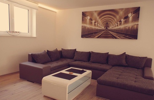 All rooms are equipped with underfloor heating. The living rooms and bedrooms are designed with hygienic design flooring, the other rooms with elegant anthracite-colored tiles. The bathroom has a spacious floor-to-ceiling shower. The kitchen is fully equipped (including Dishwasher). On request, the apartment is networked with the Internet (EUR 5 per day) and TV reception (free of charge). On request and after prior agreement, long-term renters (from 4 weeks) can use a washing machine.