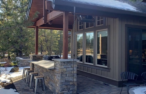 In addition to its stunning interiors, this home offers beautiful golf course views. Our guests can enjoy large covered outdoor bar, gas firepit, hot tub, grilling on the BBQ, and revel in the peaceful and beautiful landscape that is Sunriver. With all of Sunriver Resort’s amenities and endless recreation opportunities right at your doorstep and Bend and Central Oregon area attractions nearby, this home is a one-of-a-kind Northwest vacation destination.