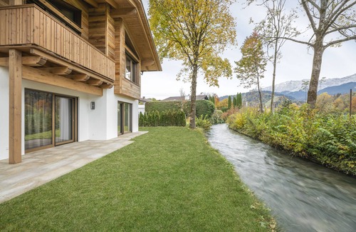 Stay at a cozy, spacious, and comfortable house with three bedrooms. The alpine vacation home is quietly situated on a stream with the most beautiful view of the mountains of Garmisch-Partenkirchen. #stayhere