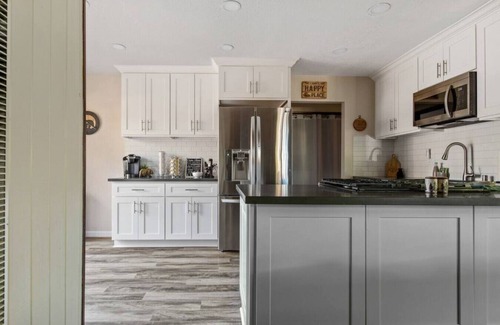 Single level, approximately 1100 square feet, completely remodeled cabin that features an open concept kitchen-living room, wood-burning fire place, smart TV with sound bar, a fully stocked kitchen, refrigerator, dishwasher, Keurig, stove/oven, microwave, toaster, washer/dryer, Wifi and a dining room table for 8.