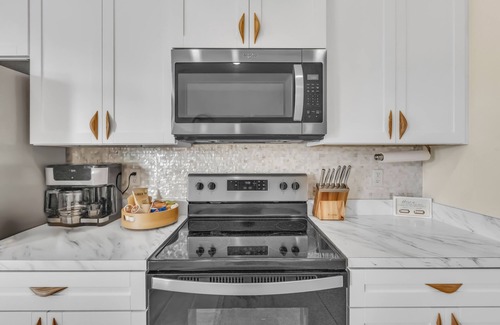 Enjoy a stylish experience at this centrally-located townhome. Minutes to historic downtown Saint Augustine, and 4 miles to the beach. Close to shopping and restaurants. Designer open floor plan with high ceilings and unique coastal finishes. Fully equipped gourmet kitchen with pantry & stainless appliances. Two master suites, with walk in closets, and smart TV’s.In unit laundry & free on site parking. Fast Wi-Fi with desk & comfortable chair. Serene private patio. Ideal for longer stays.