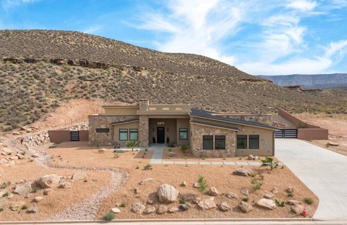 Your entire group will enjoy easy access to everything from this centrally located beautiful new home!! Easy drive to Zion NP, Sand Hollow, St. George, and golf courses. Bring your SXS's and drive straight from the house to 100's of miles of trails!! When you're not exploring, enjoy the massive covered patio with private pool, hot tub, outdoor kitchen, putting green, yard games, and 360 degree views - Zion Nat'l Park to the east, Kolob Canyon directly north, and stunning Mesa's in every direction.