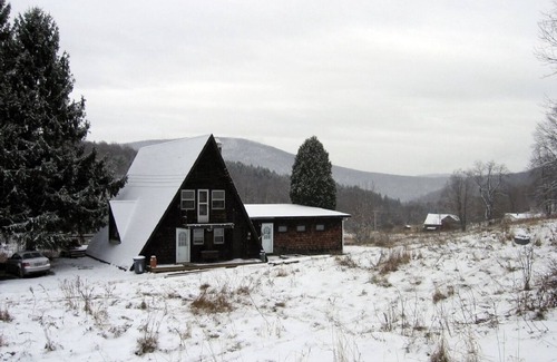 Our 2 story A frame plus addition home was built in 1967 and renovated in 2006 but it stills has some of its 1960’s grooviness(Is that a word). The property is perched on a hilltop with 180 degree views of the meadows &, meandering brook below and the nearby hills that escalate into the sweeping Catskill mountains.160 acres of land previously part of the compound but now donated as forever wild, you won’t want to leave the grounds and your well behaved pet certainly won’t. Fully-equipped open kitchen with dining area(seats 8),pool table, 2Bose Ipod stereos, jacuzzi,50'Plasma, etc.etc