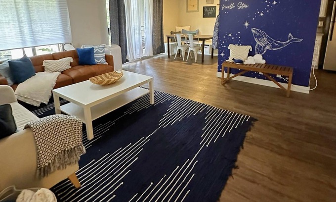 "The North star" is a beautiful and inviting 2-bed, 2-bath apartment, located near the ocean in Oceanside, California. The space is designed to provide a comfortable and relaxing escape for guests, with an emphasis on creating a warm and welcoming atmosphere.