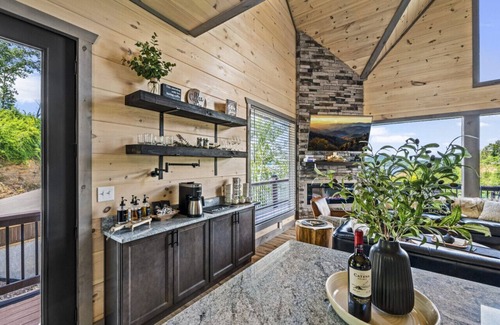Experience "On The Rocks" with incredible views, unrivaled amenities and room for your family and friends at this year-round retreat on beautiful Douglas Lake. This luxurious five-bedroom cabin exemplifies opulent accommodation. Spanning four deluxe floors, "On the Rocks" showcases a beautifully designed living area with soaring ceilings and mountain/lake views for up to 14 guests. This retreat offers activities for year-round enjoyment and entertainment. Not far from National Park, Pigeon Forge and Gatlinburg!