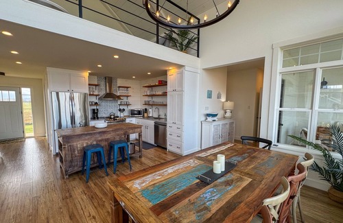 There are multiple spaces, 4 to be exact, for solo relaxation or gathering around at Summer by the Sea. The family room with smart TV is just off the main entry, the central living room is a great space for gathering together and creating wonderful vacation memories, the sunroom is a warm and inviting corner for your morning cuppa or a great book and the cozy loft above the kitchen is perfect for family games, ocean gazing & naps!