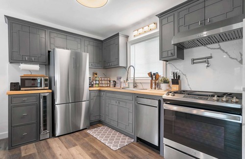 Step inside this beautifully curated bungalow perfectly designed for easy open-concept living, where cozy comfort meets modern design. The living room features a large flat screen TV complete with streaming services perfect for unwinding with some entertainment after a day of adventure.