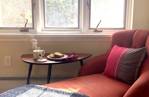 Stunning, tranquil mountainside retreat with exposed beams, saltwater swimming pool, sauna, fireplace, soaking tubs and rain shower. Situated on a 5-acre wooded hilltop a ten minute drive from Woodstock and close to miles of walking trails. Roast marshmallows on the fire pit, flip burgers on the top of the line charcoal grill, and enjoy one of the best stargazing spots around. Indoors, find a well equipped kitchen and cinema sized tv screen with Netflix/Apple TV. Convenient to ski slopes.