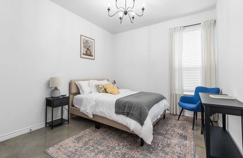 Outside, discover a fully fenced backyard offering unrivaled privacy, complemented by the convenience of an available garage. Our prime location near three esteemed hospitals ensures both convenience and peace of mind. For families, we provide a crib and playpen, catering to your every need. Just minutes away, Wilson Park and the recreation center offer leisurely escapes, while easy access to I35 ensures seamless travel. With in-unit washer and dryer, along with exceptional Wi-Fi, every aspect of your stay exudes luxury and convenience. Welcome to a world where every detail exceeds expectation.