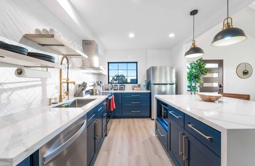 This listing includes two (2) NEW BUILD luxury villas next to each other that is pet-friendly (pet fees apply) and comes with fully-stocked kitchens, balconies overlooking the desert landscape, fast wifi (Starlink), outdoor decks, full-sized laundry machines, and all the luxury comforts and amenities of modern homes.