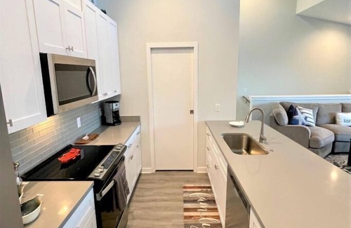 The second floor is comprised of the master suite with a queen bed, dual sinks, large shower and a walk-in closet. The master also provides balcony access. The great room features a dining area, 65” smart TV, linear LED fireplace with shiplap mantle and balcony access. Adjacent to the great room is a beautiful half bath/powder room. The great room is open to a fully equipped, gourmet kitchen. Enjoy your favorite libation by the fireplace or take it out to the balcony and enjoy the gorgeous sunset and views Carolina Beach has to offer.