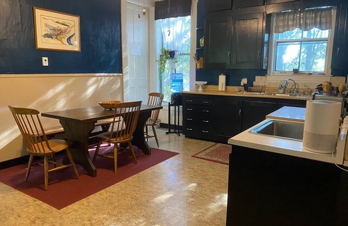 Located in Waterford VT, enjoy the rustic charm of this historic Second Empire 5-bedroom house, built in 1801. With access to the extensive 34-acre property and plenty of living spaces and common areas, guests will find this property to be a wonderful retreat. Each of the 5 bedrooms are fully dressed and boast happy guests as well their own bathroom. The 5 full bathrooms come equipped with towels and basic amenities, and a bathtub is available in the ground floor bathroom. In addition to the 5 bedrooms, there are 2 common areas with extra sleeping options like couches and a pullout sofa. The main sitting room also features a TV, DVD collection and player, and a sound system. Includes private access to the full kitchen equipped with dishwasher and an array of cookware and small appliances such as a blender and food processor. Also includes access to laundry room with washer and dryer.