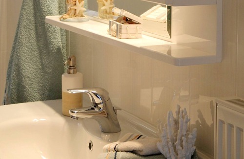 The bathroom, with a big window which provides plenty of natural light, has a bathtub usable also as a shower cabin, sink, toilet, small closet. Here you will also find the washing machine. Amenities such as soap and toilet paper and towels are provided.