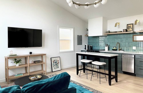 The 600 sqft cottage was designed to feel spacious with 14 foot ceilings and oversized windows that create beautiful light throughout the space. Enjoy modern finishes, stylish and eclectic design elements, and easy access to the University of Oregon.