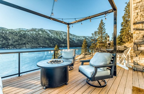 This stunning home is everything that a Lake Chelan home should be. You'll love having your own private pool, boat dock, and 100 feet of waterfront to play with. Plus, there are lake views from nearly every room in the house. This home also features a great kid-friendly space in the loft - it's perfect for movie-watching while lounging in bean bag chairs. There is a lovely gas fireplace in the living room, and outside you'll find a wrap-around deck with a propane fire table, lots of seating, and a private gas grill.