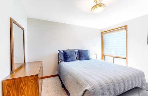 With two bedrooms, an open loft space, and two full bathrooms, this Sunriver condo will accommodate a total of six guests. The primary bedroom has a queen bed and an attached bathroom with a tub/shower combination, while the second bedroom has a queen bed and large windows that let in the sunlight. The loft overlooks the living space, offering one double-size bed and one twin bed.