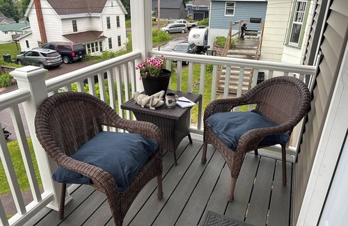 This charming three-bedroom gem in Hancock (Ripley) features a well-appointed kitchen, a first-floor bathroom with shower/bathtub and washer/dryer, a convenient entryway, and a cozy living area. It also offers a full-size bed and generous closet in the first-floor bedroom. The upstairs bedrooms have a queen bed and a twin trundle bed, respectively. With modern amenities such as WiFi, a Smart TV, and a Keurig coffee maker, you’ll enjoy this historic destination in comfort. Whether looking for a peaceful retreat or a convenient base for outdoor adventures, this property has it all.