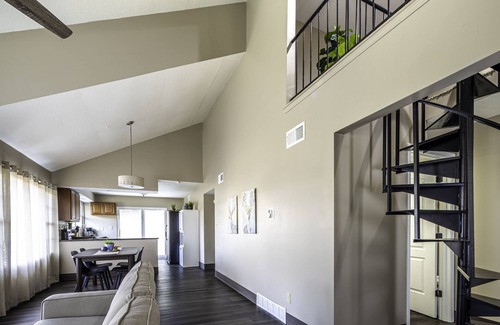 This charming condo in Kansas City, KS has had a complete makeover! From the floors to lighting fixtures and furniture, everything here is brand new. With soaring, dramatic ceilings along with clean, simple modern design touch throughout the space, this home certainly has the “wow” factor.