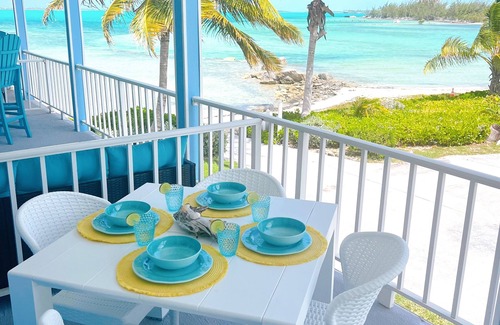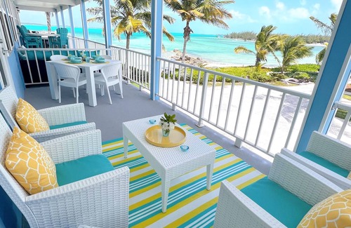 Luxury renovated home located at The Hideaways at Palm Bay! This gorgeous 2 bedroom, 2.5 bath overlooks Elizabeth Harbour and is steps from the ocean. Restaurant on property and many other within walking distance. All resort amenities included (pool, gym, kayaks, etc). Free shuttle service into georgetown.