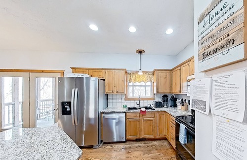 Experience the best of Branson and the Tri-Lakes in comfort and style at this spacious home beautifully tucked into the trees. Whether you're planning to fill your days with fishing, jet-skiing, or the rides and attractions of Silver Dollar City, you'll find this house to be the ideal home base. Enjoy a convenient location near the best of the Tri-Lakes - rent jet skis to explore expansive Table Rock Lake, kayak the river-like Lake Taneycomo, or bass fish on the forest-lined Bulls Shoals Lake. Travel back in time at sprawling Silver Dollar City, a one-of-a-kind 1880s amusement complex, or visit Ballparks of America to take in the replicas of the nation's greatest stadiums. The Strip, the live entertainment capital of the Midwest, provides an unforgettable night on the town - be sure to catch a show at Presleys' Country Jubilee or Dolly Parton's Stampede.
