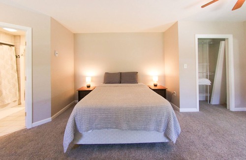 The back-yard provides enough space for plenty of activities such as sunbathing, picnics, playing games, swimming, fishing, or having a fire. Each of the 4 bedrooms have comfortable beds, multiple outlets, dressers, and closet space. The master bedroom comes with a private and spacious bathroom which also has a jacuzzi. The kitchen includes an oven, refrigerator, sink, dishwasher, extra cabinet space, and a large countertop. All dishes, pots & pans, and utensils are provided. The living room holds two couches and has a large flat screen TV which makes this area a perfect spot to connect with family and friends.