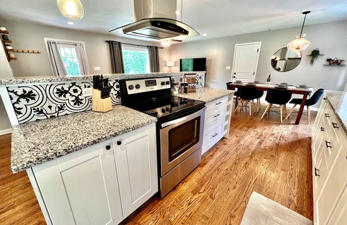 Newly Renovated 3 Bedroom/2 Bath one-story cul de sac home in Northeast Raleigh! Can sleep up to 7 people. Open concept home, new floors, fully-stocked kitchen, living and dining area. Relax on the patio or in the fully fenced in backyard. Just 2 small steps on the front porch, then enjoy the ease of a one-story stay!