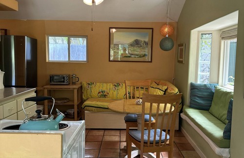 Enjoy a restful respite in this private cozy cottage with a beautiful private garden. The Lanikai Bungalow is a private separate cottage. It has one bedroom with beautiful relaxing living spaces, full kitchen and bathroom. The cottage has a gorgeous private lanai/patio that is surrounded by a garden full of lush banana trees, pomelo, papaya, starfruit, lemon tree & tropical foliage. The bedroom has a king size bed with soft comfortable linens. A/C unit as well as cable, flat screen tv & WIFI. TV is located in the bedroom there is no tv in living area. Kayak /paddle board for rent. Waiver required