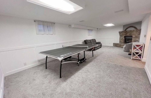 With 1 king bed, 3 queen beds, and one room with two twin beds, this tranquil retreat offers a perfect blend of comfort and space. Enjoy the convenience of amenities like WiFi, AC, and a washing machine. Perfect place for your group to spend your time. Has a large living space/ game room down stairs with fireplace and ping pong table. Barbeque grill located on the side of the property. Our place will help you feel at home while you're traveling in Shelley. Located on quiet city street in town. Property is a two story ranch home with 3 bedrooms and 1 bathroom upstairs. Has two bedrooms with the other bathroom downstairs. Has a washer and dryer on property which guests are free to use.