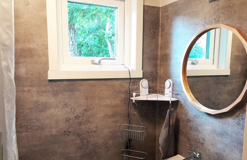 Here is a nice newly built small cabin with room for 3 people divided into 1 bedroom with a single bed and a cozy little living room with a double sofa bed. You have a small kitchen with a small stove with two hotplates, small fridge with a freezer compartment. The house is idyllically located in a quiet residential area Billdal, completely private but still close to everything.