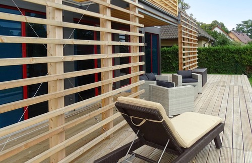 The vacation home with the special construction is modern and comfortably furnished and has two separate bedrooms.