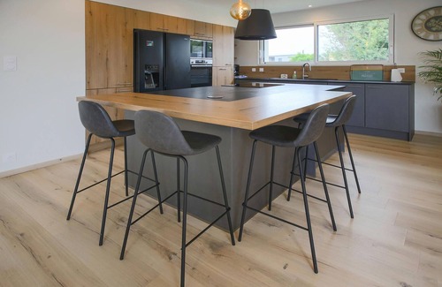 You'll be happy as can be in this modern and chic vacation home. Your family and you will have plenty of space for privacy or to spend time together. The large living room is particularly inviting, here you can cook together in the luxurious kitchen or relax on the sofas.