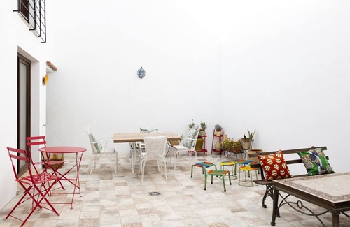 NOGUERA CASA RURAL, CASA DE POBLE, in Xaló, La Marina, Alicante is almost 200 years old and has been restored preserving its original style. It has 5 bedrooms, four bathrooms and a toilet, large common spaces (patio with barbecue, kitchen and three living rooms), simply decorated with furniture and antique objects from different parts of the world. The house is cozy and bright. Full rent for 9 people. It is ideal to enjoy with family and friends. The house is distributed as follows: