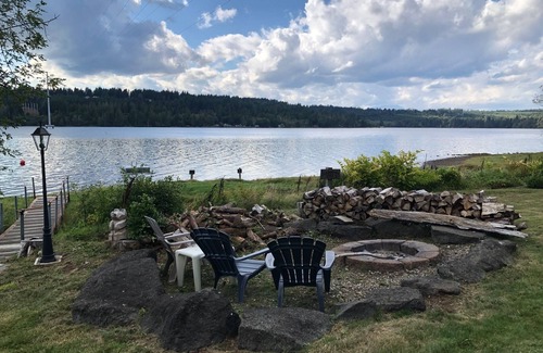 Perfect for your beach vacation. Stroll the beach, dig for clams or oysters while the tide is out, and then kayak or paddle board when the tide comes in. Dine on the deck, then roast marshmallows by the bonfire! You may see bald eagles, harbor seals, otters, or possibly even orcas! Enjoy the view from the deck or great room. See through fireplace, gourmet kitchen, jetted tub, vacation in style!