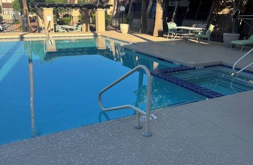 Overlooking the horizon, you can see the mountains towards Buckeye, AZ from the upper or lower level, enclosed patios. Quiet community with a clean, quaint space to reside in during your stay. In unit washer, dryer along with free utilities including wifi and cable TV. Enjoy the community pool and spa at your leisure and feel free to use any/all linens provided they are returned after your stay.