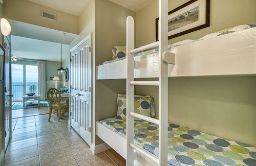 CELADON BEACH RESORT #1404 in Panama City Beach, FL is a 1 bedroom plus bunk area, 2 bathroom vacation condo complete with all of the conveniences of home. Celadon 1404 has a spacious living room area with wonderful views of the Gulf. Fully stocked kitchen with new appliances in 2019. There is a washer/dryer in the unit. Towels and linens are provided. The master bedroom has a king bed and full en suite bath. Twin bunks in the hallway are perfect for the kids. The sofa pulls out to a queen bed and has a new mattress.