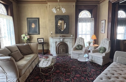 The home is prominently situated in Davenport's Historic Hilltop Campus Village, a Main Street Iowa/USA District. With several restaurants, cafes and coffee shops nearby, The Hilltop Inn is nestled between the campuses of St. Ambrose University and Palmer College of Chiropractic. For those attending the annual Bix7 Race, the property is ideally located at the corner of Brady St. & Kirkwood Blvd. so you have a front seat view as the make the turn on the way up and back down the hill! A stroll in the park more your style? The historic VanderVeer Park and Botanical Gardens (including a duck pond and all-abilities playground) are just a few blocks away. Convenient guest parking on-site. Those wishing to secure this space for special 1-day events should email historicheightsllc@gmail.com.
