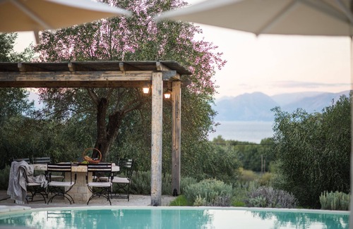 Nestled near Avlaki Beach in Corfu, our stone-built villa epitomizes seaside elegance. Facing the sea and mountains, its four ensuite bedrooms boast Egyptian cotton sheets, ensuring comfort beyond compare. The spacious living and dining areas, adorned with stone and wood, create an atmosphere of timeless luxury.