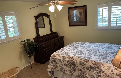 Spend some time on the prettiest street in Alabama in its recently named "Most Charming Town!" If you're looking for a location that's 15 minutes from shopping and fun at Owa in Foley, 25 minutes to sandy white beaches, or 20 minutes to the Grand Hotel you'll love the Oak Street Oasis in Magnolia Springs. If you have a boat or kayaks - bring them. After a long day, grill out on the patio, light up the fire pit, and relax in the hot tub, all located within the privacy of the backyard. If you don't want to cook - don't fret - the famous Jesse's Restaurant is just a five minute walk down the street. The Oak Street Oasis is truly your personal retreat from it all! (No pets allowed.)
