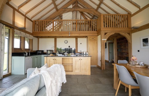 A three bedroom oak-framed contemporary house with stunning design features in every room and a striking sense of light and space.