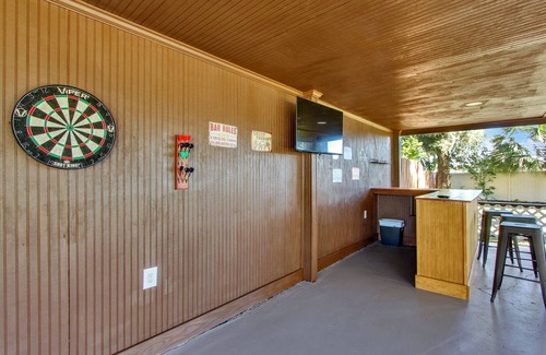 This stunning property boasts an array of incredible amenities that will make your stay truly unforgettable.Outside you'll find a charming cabana complete with a TV, bar and lounge area. You will also find a spacious luxury pool, cozy fire place, mini golf course and kayaks available to check out some of the local beautiful crystal clear springs. Inside the property there’s a game room equipped with a pool table, foosball and tons of games! 4BRs and 2Bathrooms.