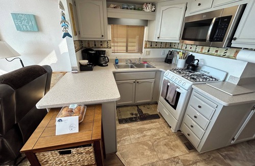 Enjoy an exquisite getaway in our ocean front cabin overlooking the Pacific Coast at White Rock Resort!Our cabin is fully equipped with everything you need to feel right at home. A spacious and comfy living room and dining area overlooking the ocean, a fully equipped kitchen, a downstairs master bedroom with a queen bed, bathroom with shower and bathtub and upstairs loft with two twin beds (non standing).
