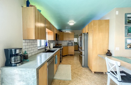 With all new amenities, the house is furnished for modern comfort! Stainless steel appliances in the kitchen include a spacious fridge/freezer combo with ice maker, dishwasher, gas stove and oven, microwave, and toaster. Enjoy cooking at home with all the pots, pans and utensils.