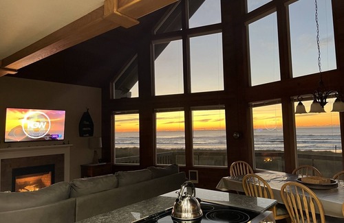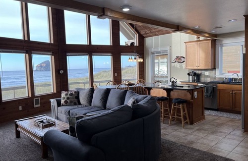 The floor-to-ceiling panoramic windows and open floor plan allows daylight throughout, while providing unobstructed views of Beautiful Sunsets and Haystack Rock.