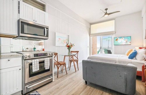 OCEAN FRONT STUDIO ON THE SAND! is located in Carlsbad Village. OCEAN FRONT STUDIO ON THE SAND! provides accommodation, featuring Kitchen, Balcony/Terrace, Security/Safety, among other amenities. This Apartment features Kitchen, Balcony/Terrace, Security/Safety, to make your stay a comfortable one.
