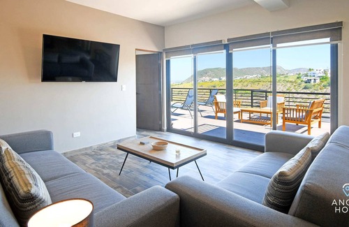 The newly built property is located in a peaceful residential part of La Paz with breathtaking views of the mountains as well as the ocean from the elevated area. You’ll be about a 5-min drive to the north end of the Malecón (beachside promenade). Downtown and the best beaches are nearby as well. And although the location is a bit remote you'll enjoy the peace and tranquility while at home! It's like you're in your own utopia.