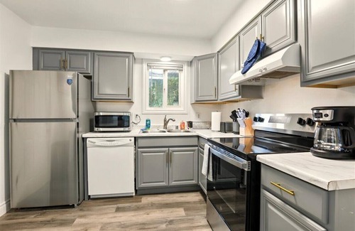 Our bright and comfortable 2-bedroom, 1-bath apartment—perfect for unwinding after a day exploring Anchorage. The spacious living area features a 75” smart TV with internet access, ideal for streaming your favorite shows. Share a home-cooked meal at the dining table, with a fully equipped kitchen that includes a brand-new fridge and stove, toaster, coffee maker, steam pot, utensils, and more.