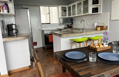 Enjoy ocean views from this centrally located condo in Miraflores' Malecon. Fully equipped and comfortable. Stay inside or go out to visit the multiple things to see and do in the Malecon.