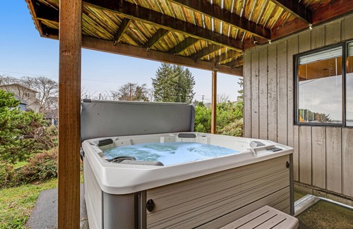 Gaze out across Netarts Bay and the open Pacific Ocean beyond when you escape to this ocean-view home — a wonderful choice for your next Oregon Coast getaway. Take daily walks to the shores of Netarts Community County Park, light the gas grill for lunchtime barbecues on the wrap-around deck, and soak in the hot tub while taking in the view. Inside, you'll find everything you need, from a cable TV to large windows that frame gorgeous ocean sunsets.