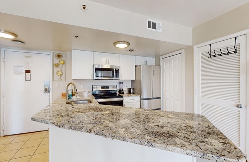 After beach days, unwind on the double sofa bed and watch a movie on the TV. Stainless steel appliances and granite countertops gleam in the immaculate kitchen, fitted with all you need to create your favorite meals.