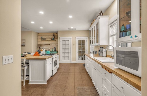 Preparing and gathering for meals will be a breeze in the spacious, fully equipped kitchen. There is a large center-island, with seating for 6, ideal for casual meals and keeping the cook company. There is also a formal dining room with seating for 10 off of the kitchen where you can enjoy celebrating a birthday or a special occasion with a sit-down dinner.